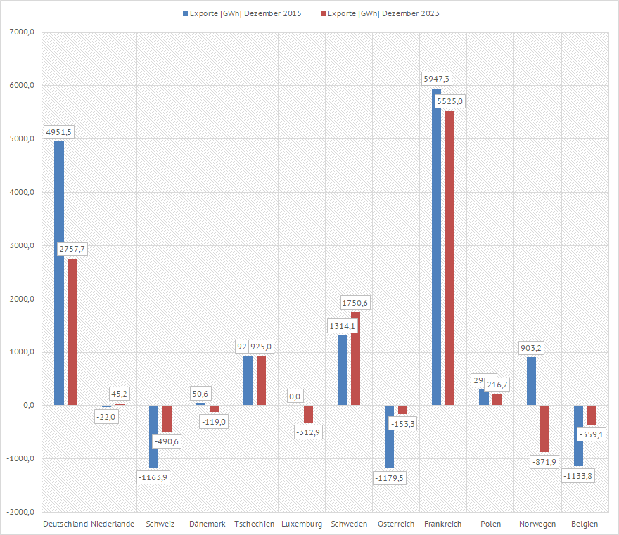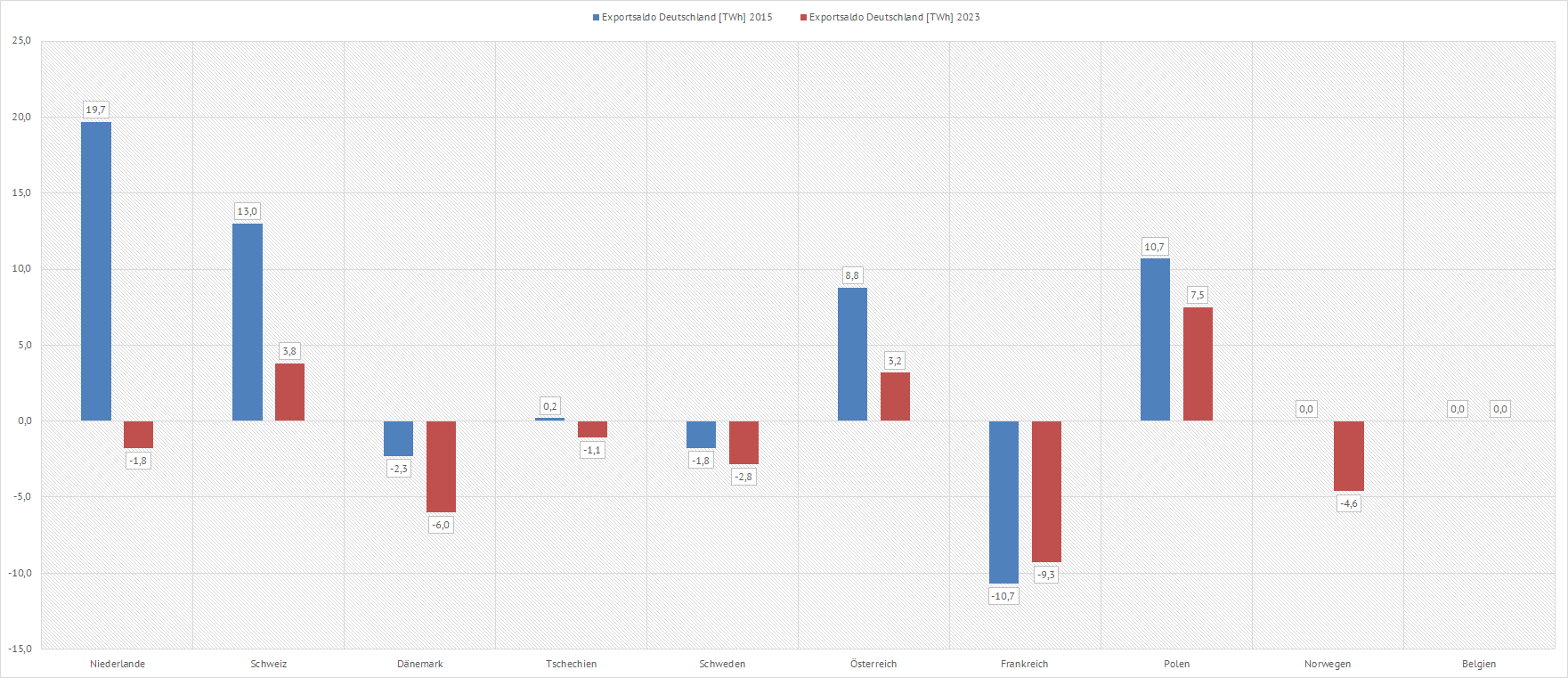 | Deutschlands Stromexportsalden im Vergleich | ||||||||||||