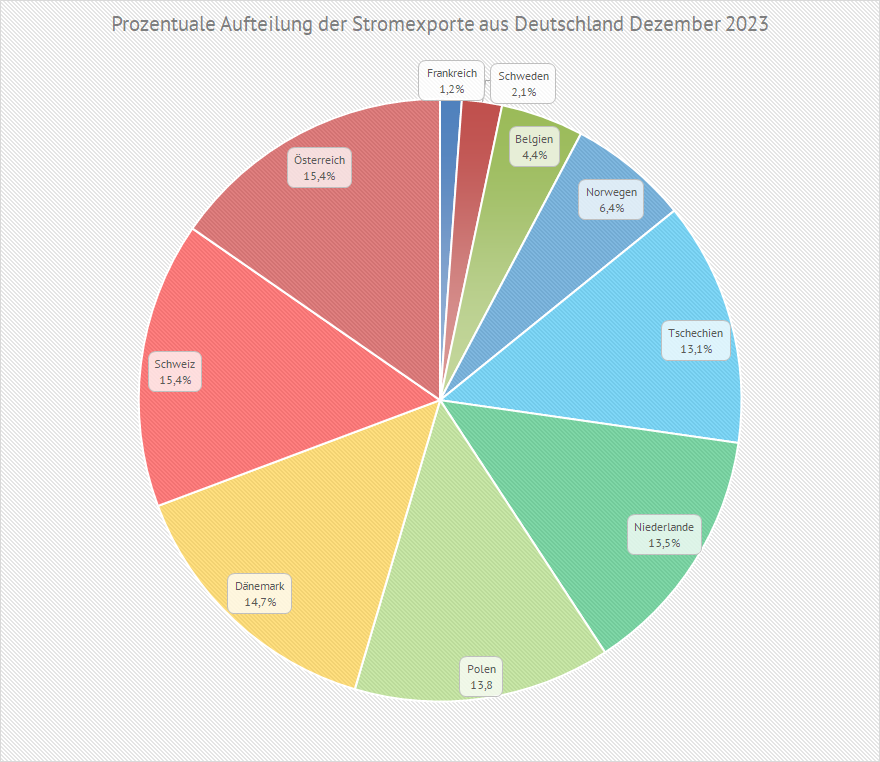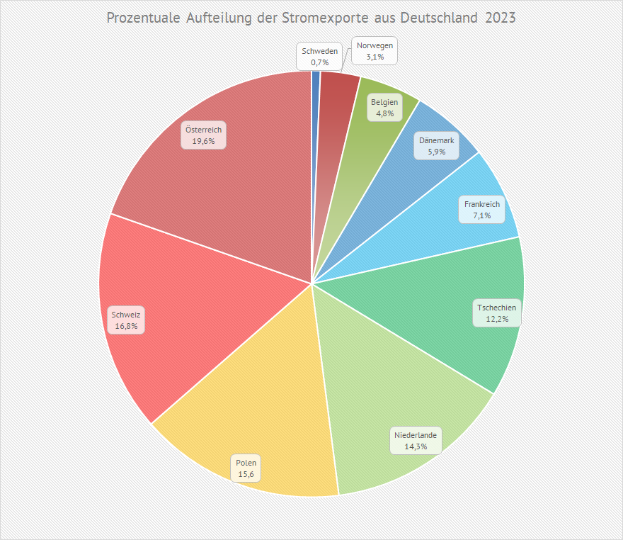 | Prozentuale Verteilung der deutschen Stromexportmengen nach ausgewählten Ländern Europas im Vergleich | ||||||||||||