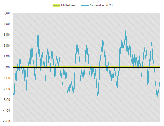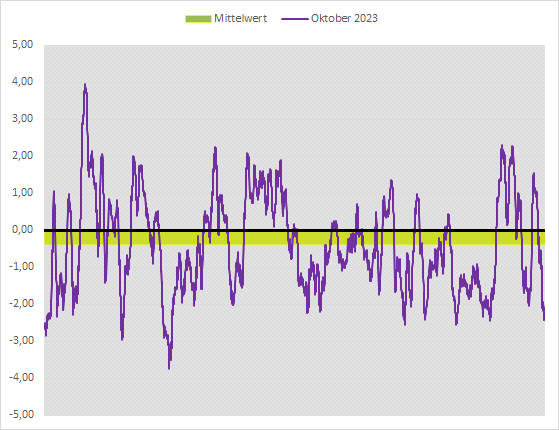 Dargestellt sind die wöchentlich gemittelten Differenzen zwischen den in