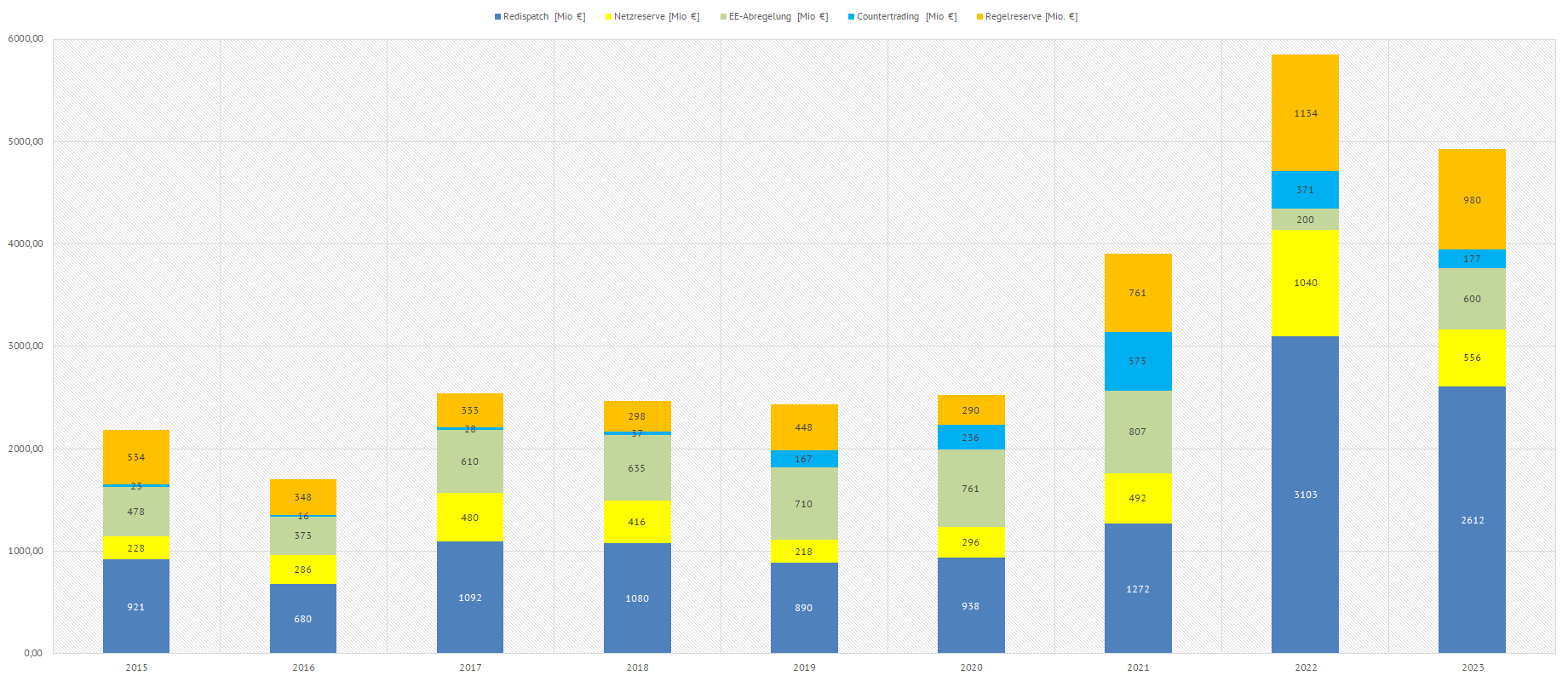 Dargestellt sind die Kosten für Redispatch und