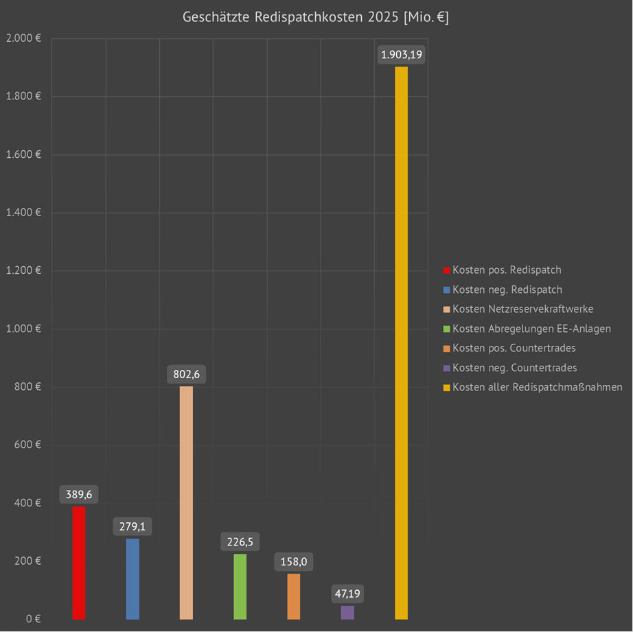 | Geschätze geleistete Redispatcharbeit und deren Kosten 2025 | ||||||||||||||||||||||||