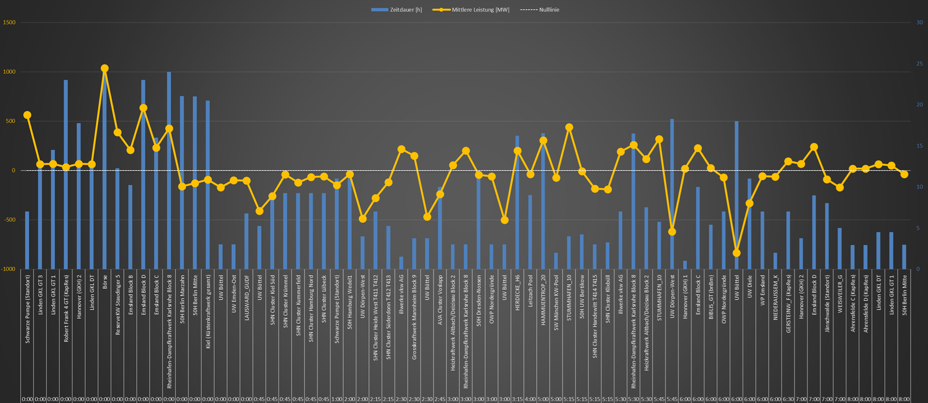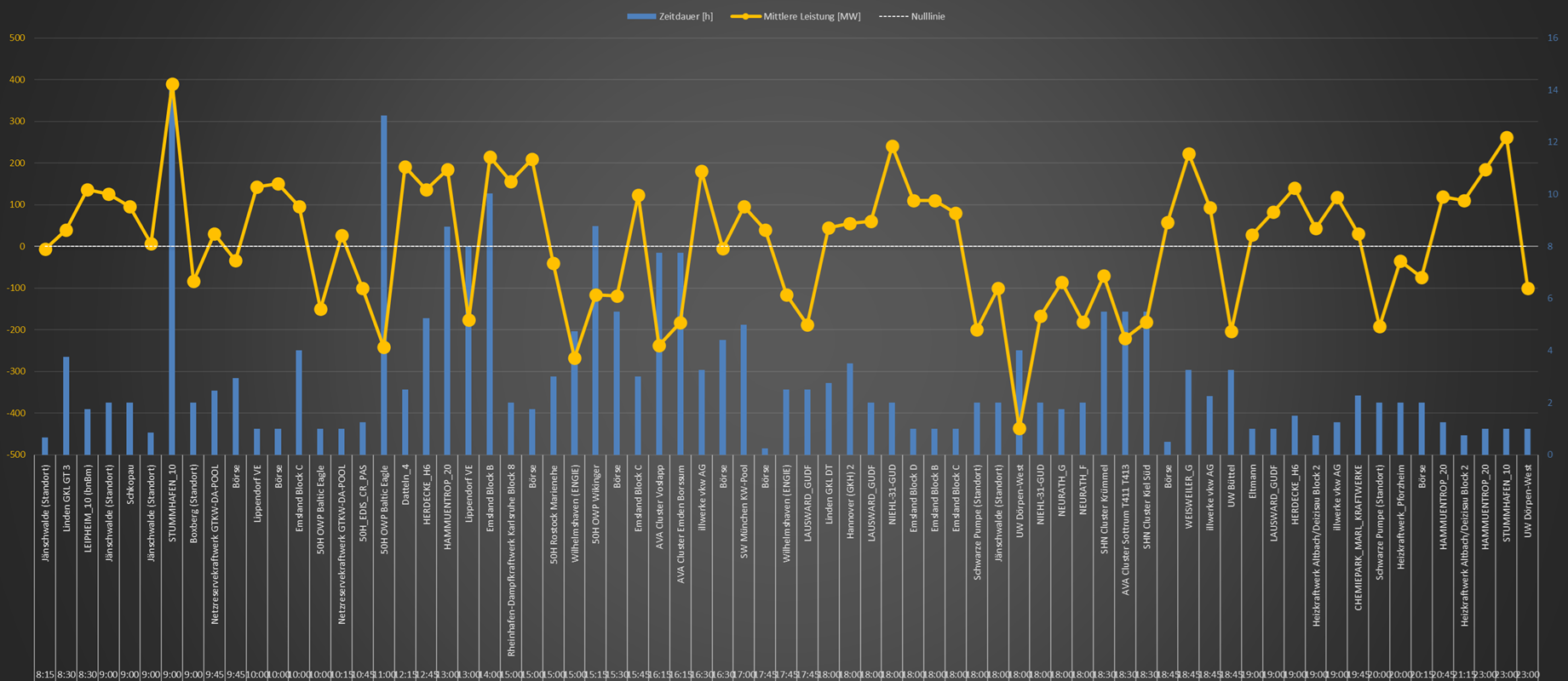 Kraftwerksbetreiber von den ÜNB angewiesen, ihren am Vortag festgelegten