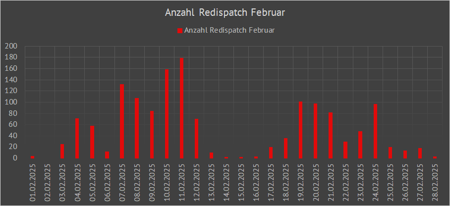 | In den nachfolgenden Grafiken sind die daraufhin von den Übertragungsnetzbetreibern angeordneten 202 Redispatcheingriffe dargestellt: | ||||||||||||||||||||||||