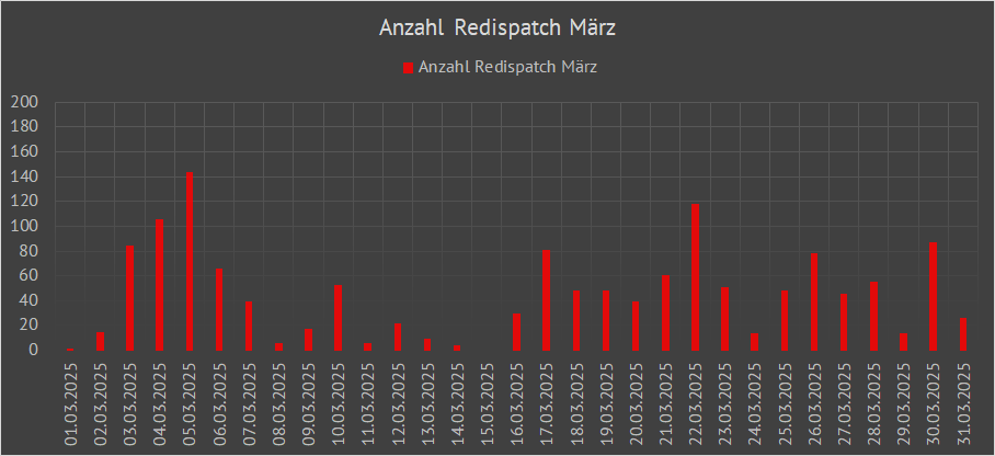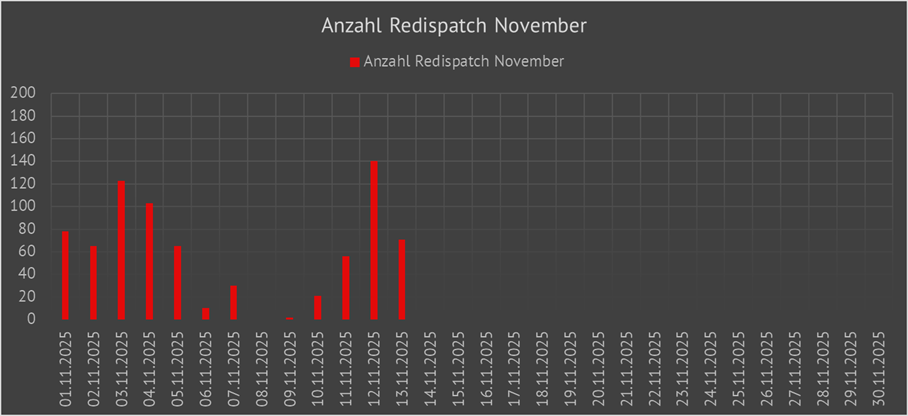 | Anzahl der täglich gestarteten Redispatchmaßnahmen der Übertragungsnetzbetreiber im Jahr 2025 | ||||||||||||||||||||||||