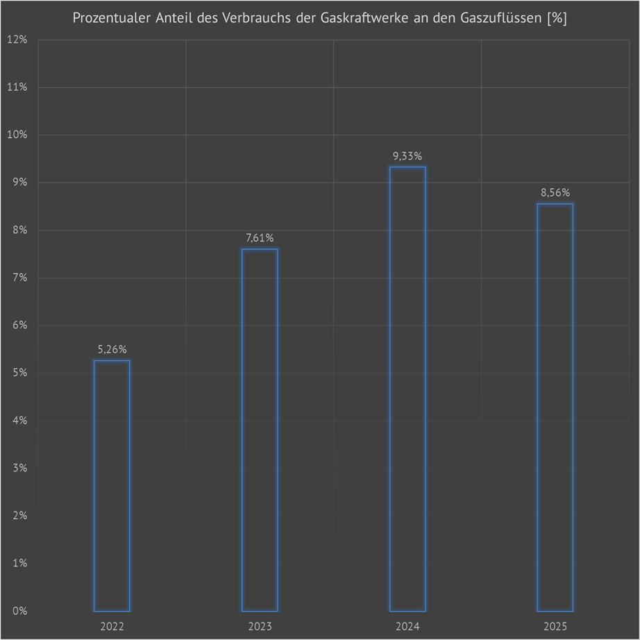 | Anteile der relevanten Gasmengen an der Gasversorgung in Deutschland 2022, 2023, 2024 und 2025 | |||||||