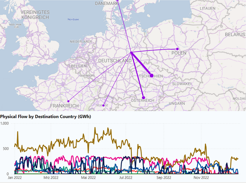 | Dargestellt sind die einzelnen Gasflüsse Deutschlands in Gigawattstunden pro Tag. | |||||||