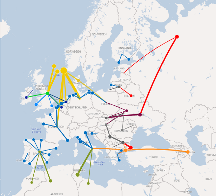 | Historische physikalische Gasflüsse innerhalb und nach Europa | |||||||