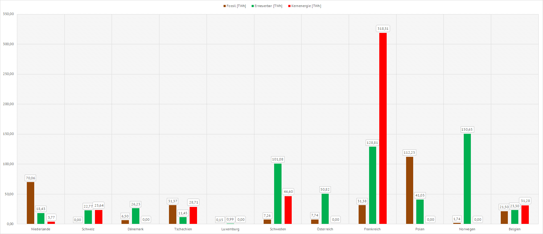 | Bisher im Jahr 2023 produzierter Strommix von Deutschlands Stromhandelspartner | ||||||||||||