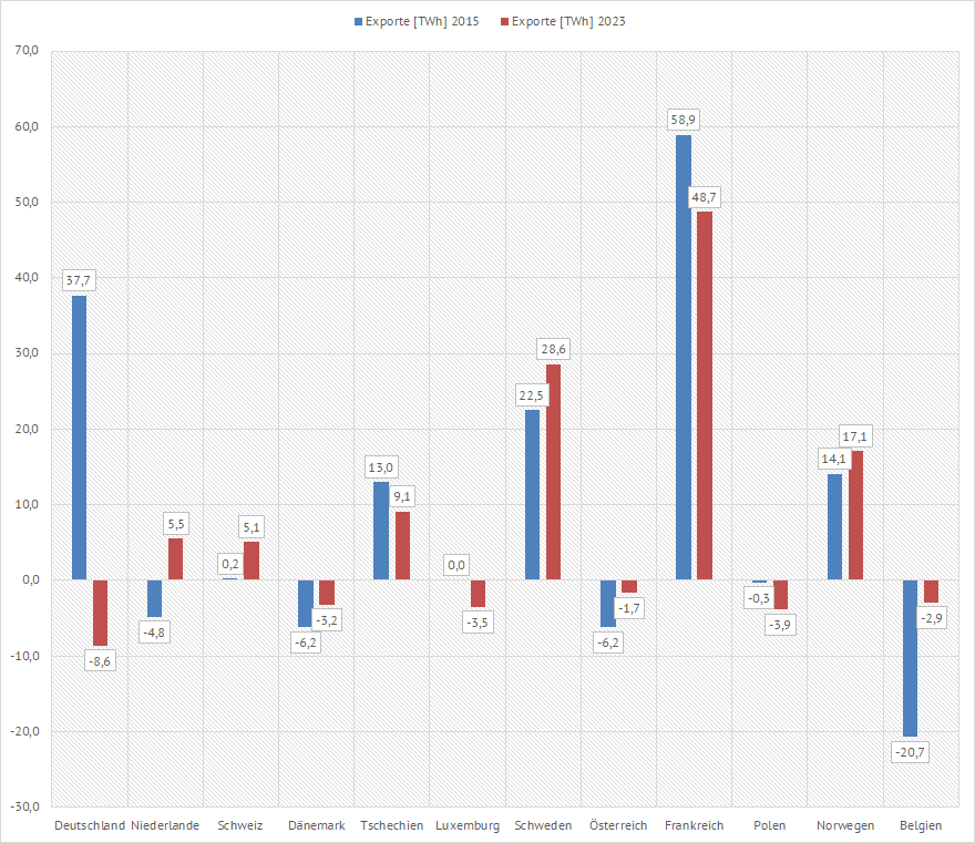 | Deutschlands Stromexportsalden im Vergleich | ||||||||||||