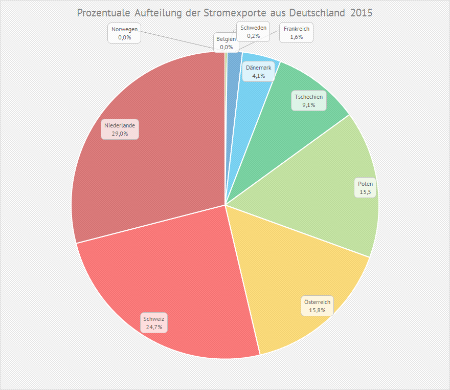 | Im Jahr 2015 exportierte Deutschland 29 % seiner gesamten Exportenergiemenge in die Niederlande. | ||||||||||||