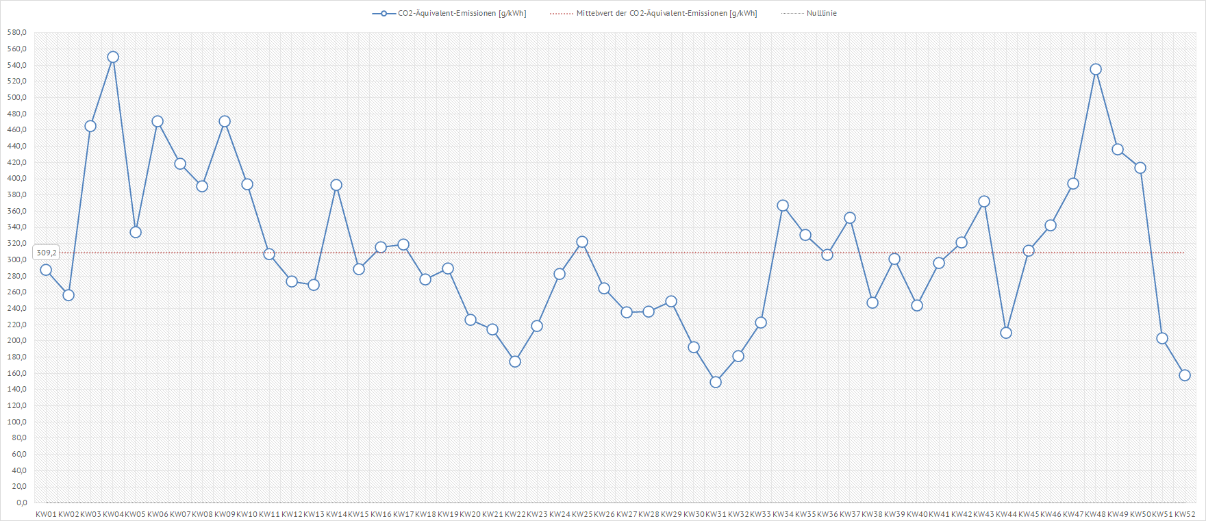| In der Kalenderwoche 4 (KW4) stieß Deutschland ein CO2-Äquivalent von 550,2 g/kWh aus. Dass der CO2-Ausstoß in den nachfolgenden Kalenderwochen sank, hat zum einen mit der verstärkten Stromerzeugung durch die erneuerbaren Kraftwerksanlagen aber zum anderen auch mit den gesunkenen Stromexporten und den gestiegenen Stromimporten zu tun. Weniger Export und mehr Import von CO2-armen Strom entlastet die CO2-Bilanz von Deutschland entsprechend. | ||||||||||||