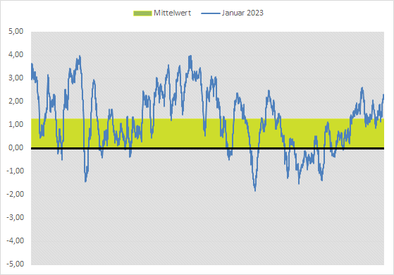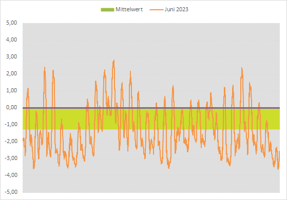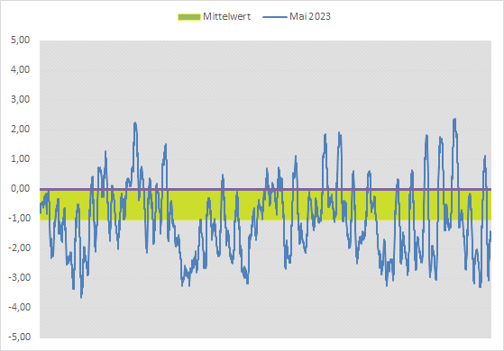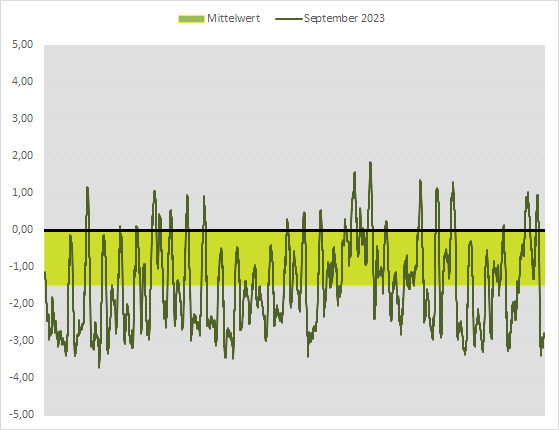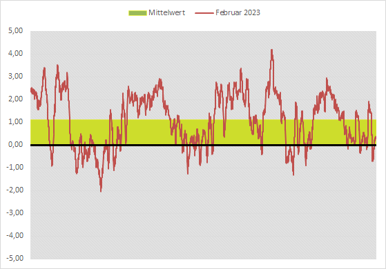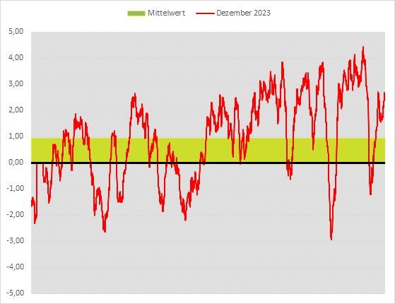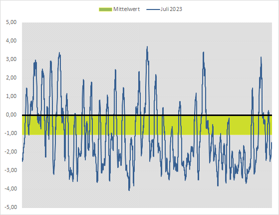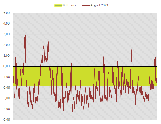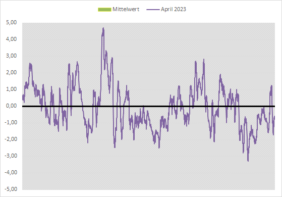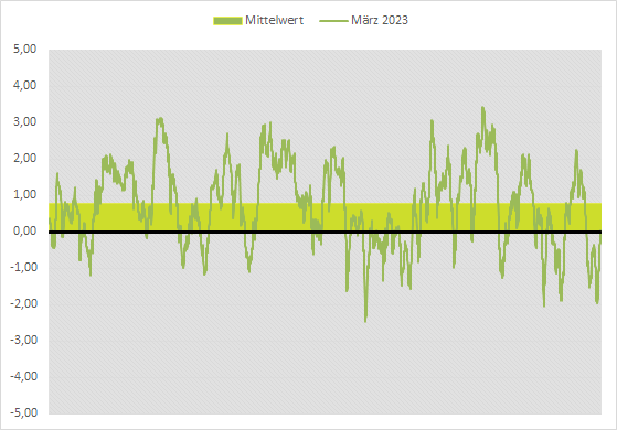 Dargestellt sind die wöchentlich gemittelten Differenzen zwischen den in