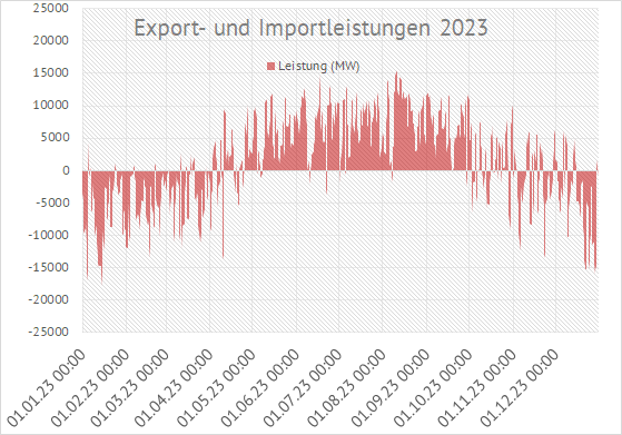 im Jahr 2023 [positive Werte --> Stromexport / negative Werte --> Stromimport] |