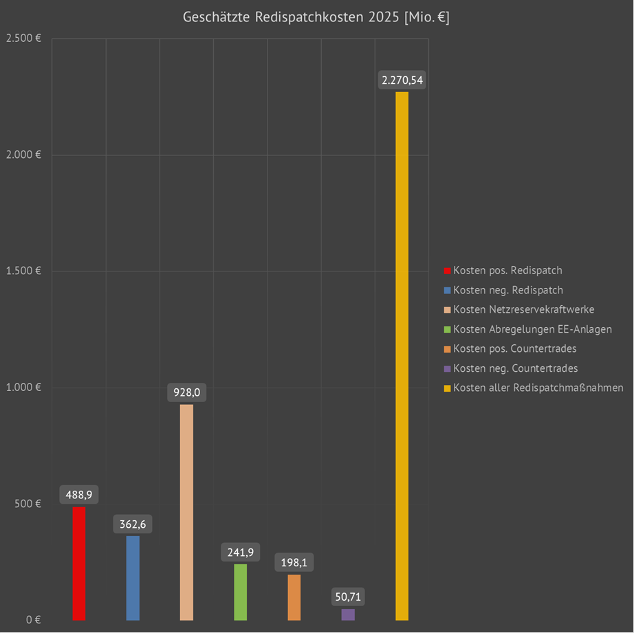 | Geschätze geleistete Redispatcharbeit und deren Kosten 2025 | ||||||||||||||||||||||||