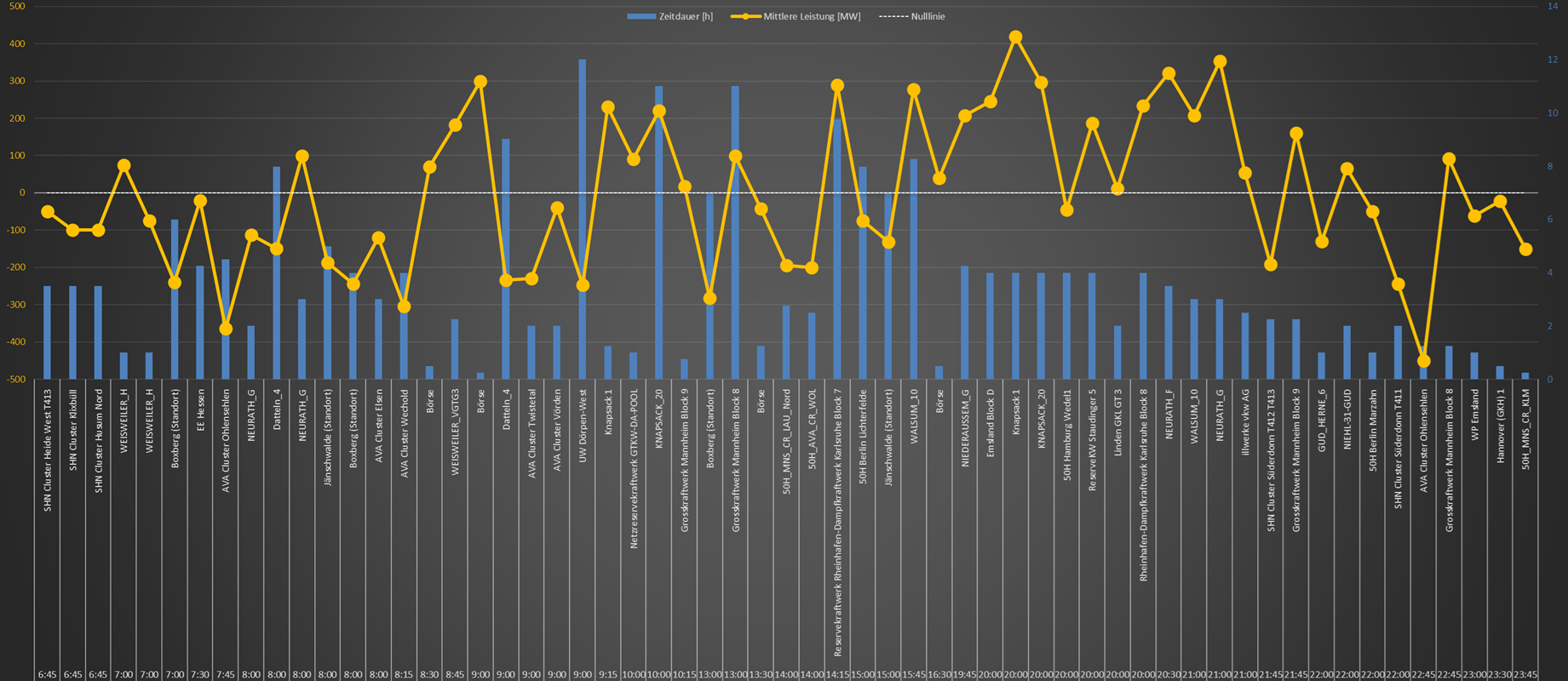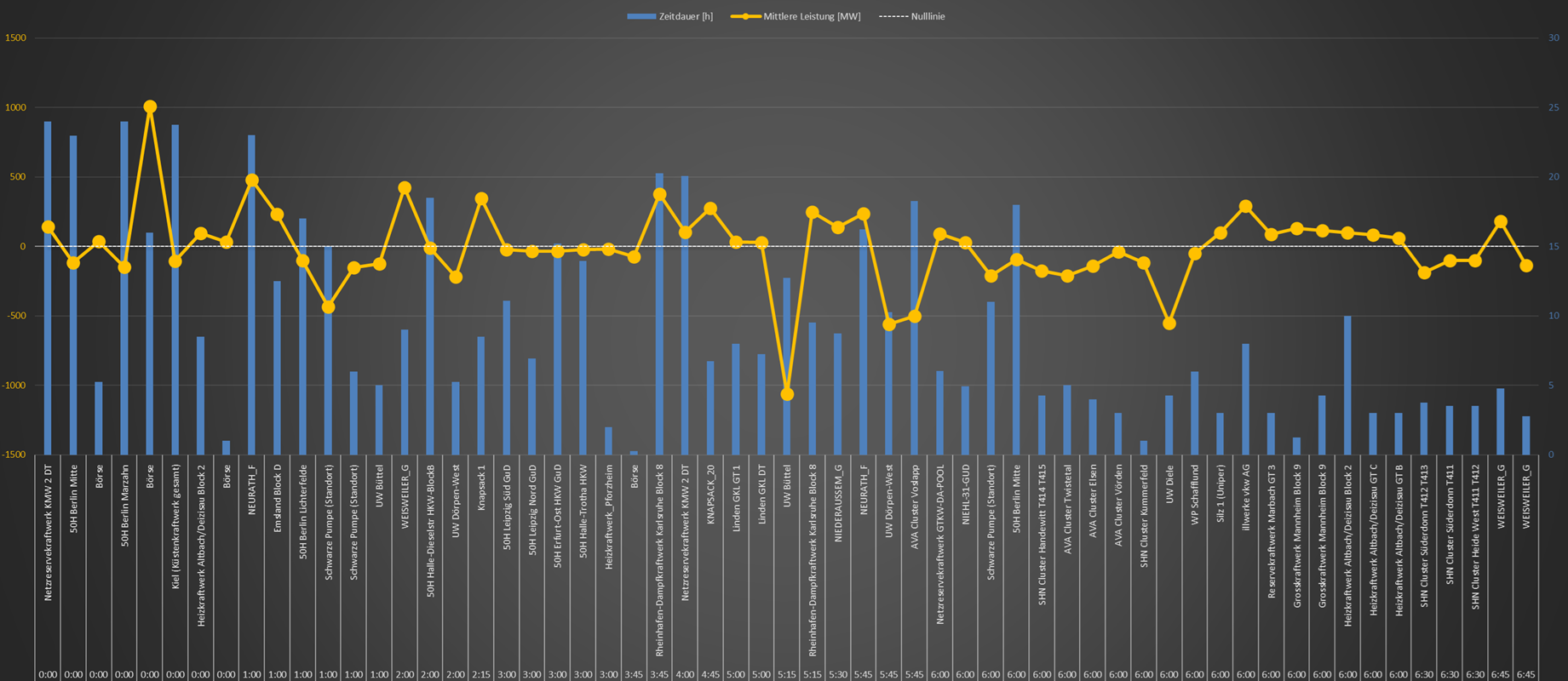 Kraftwerksbetreiber von den ÜNB angewiesen, ihren am Vortag festgelegten
