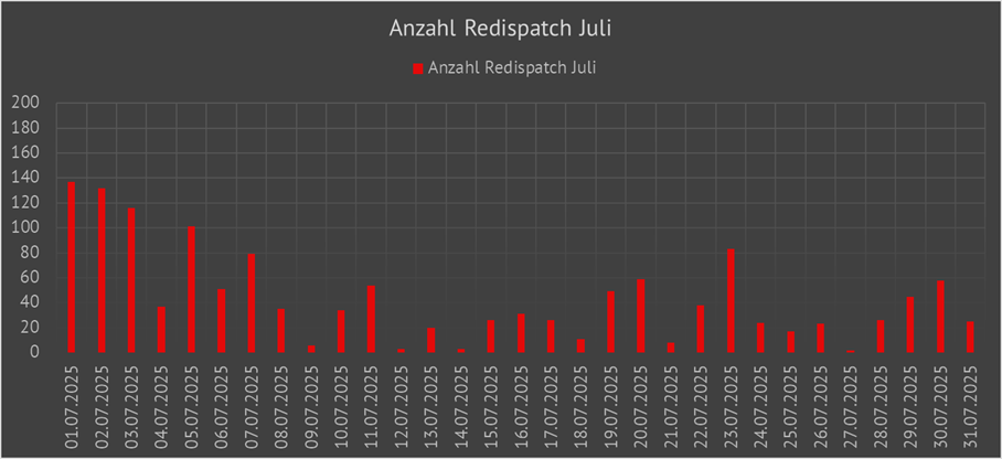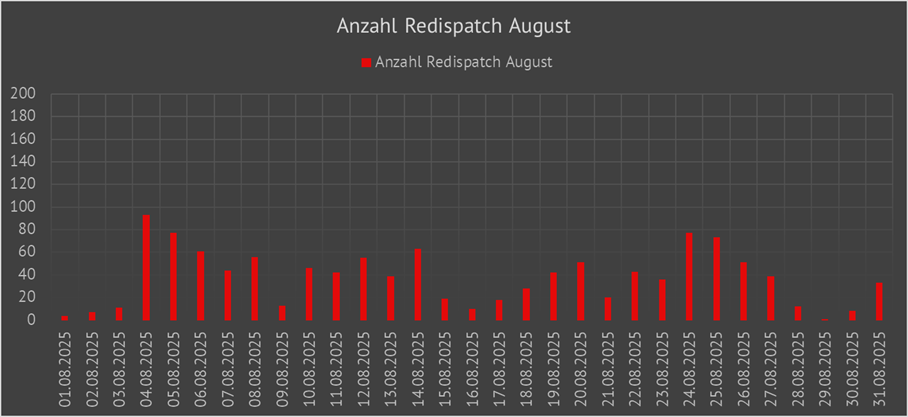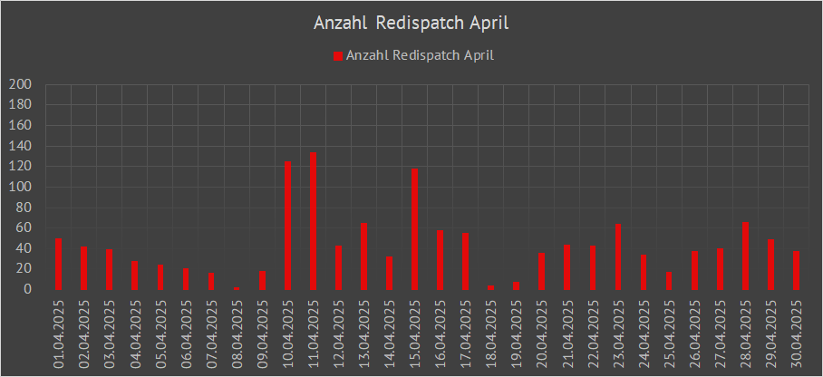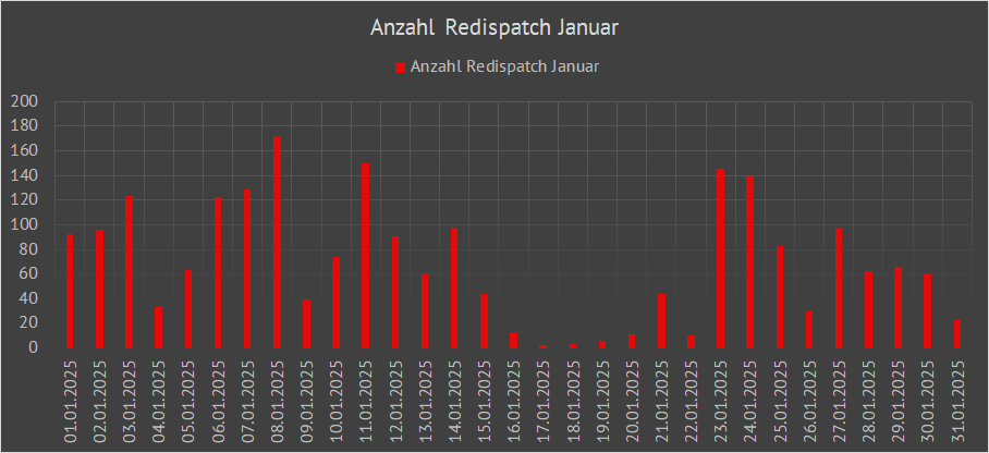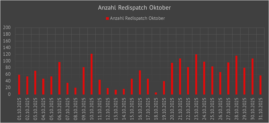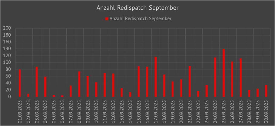 | Anzahl der täglich gestarteten Redispatchmaßnahmen der Übertragungsnetzbetreiber im Jahr 2025 | ||||||||||||||||||||||||