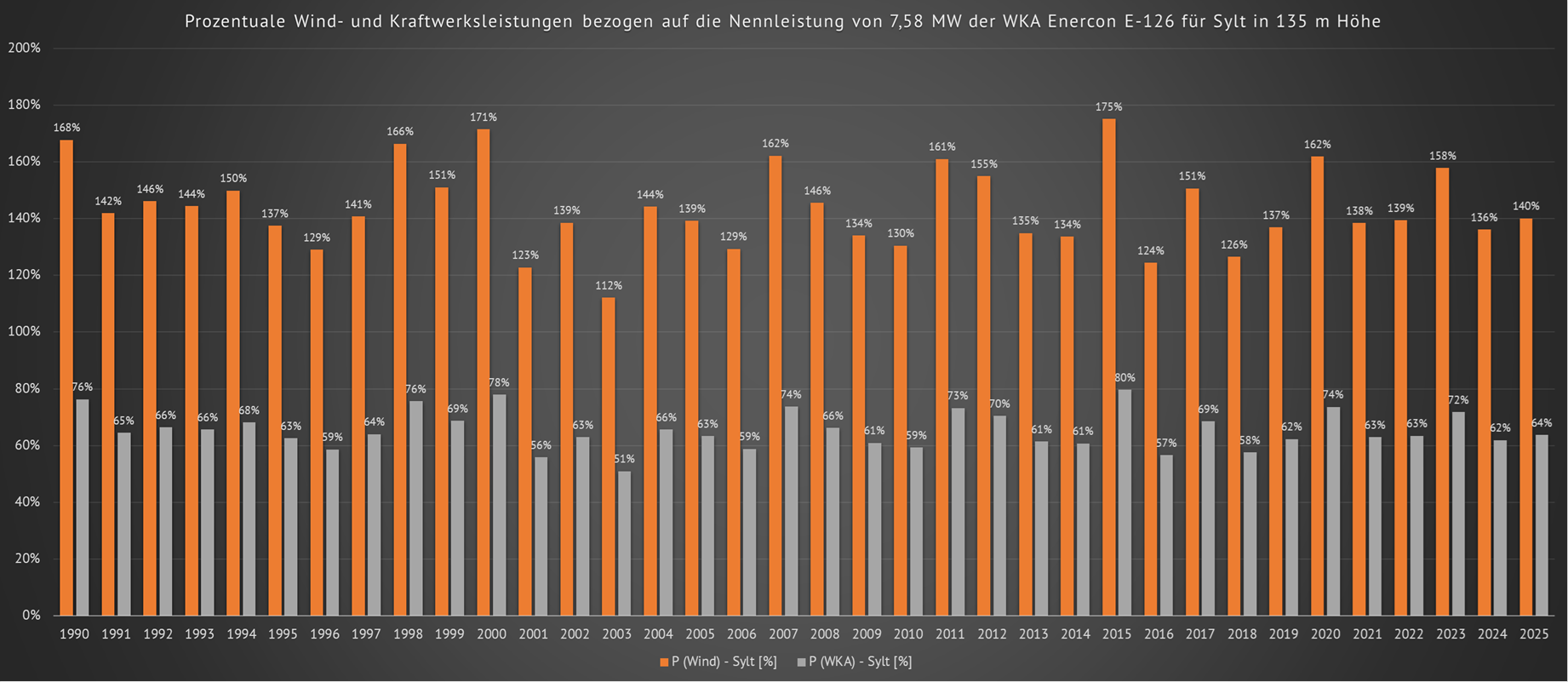 von 10,98 m/s am Standort Sylt, erreicht die Enercon