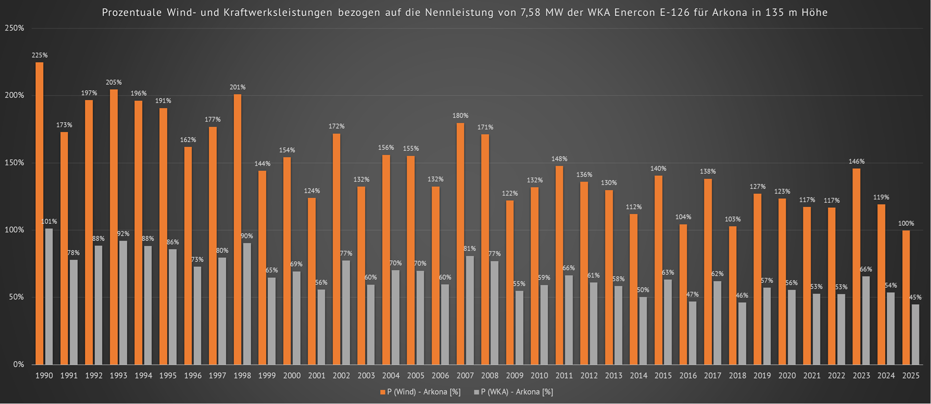 von 11,10 m/s am Standort Arkona, erreicht die Enercon