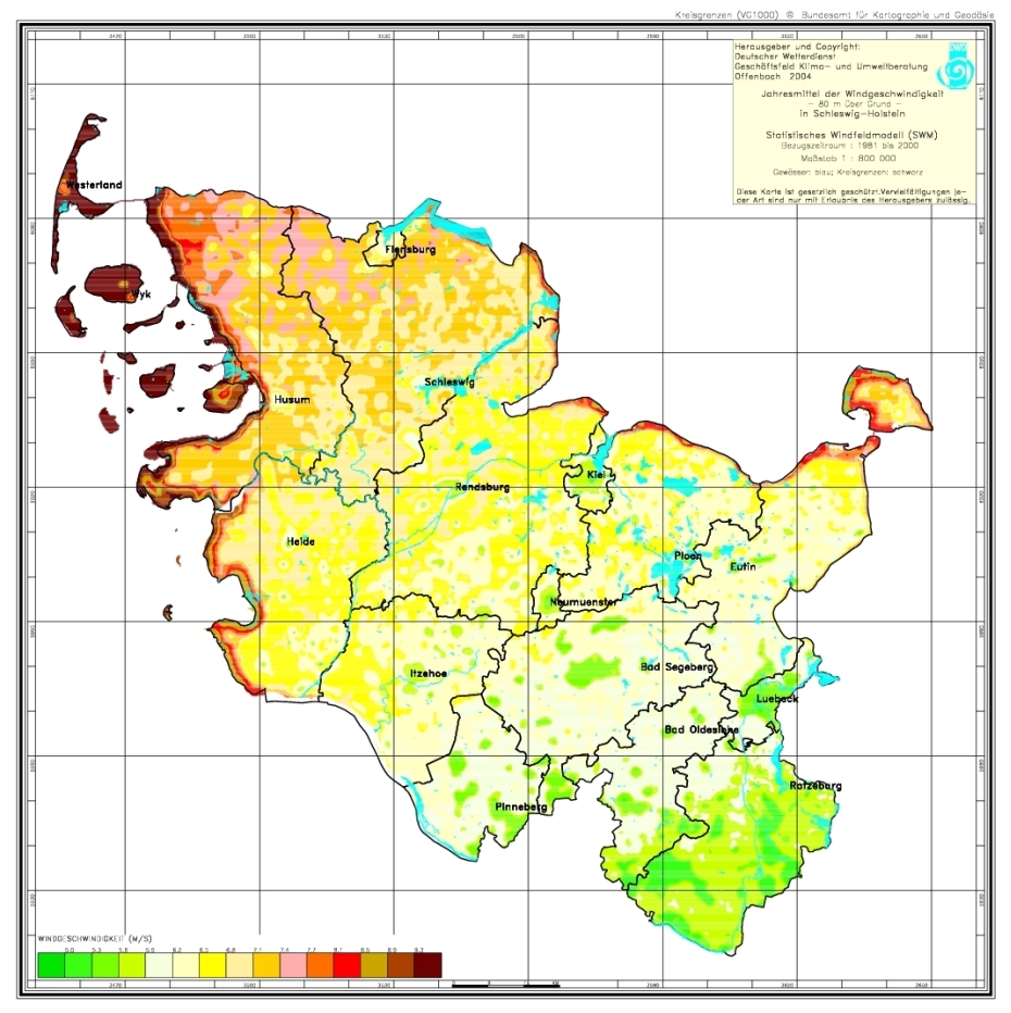 E-126 im Durchschnitt nur bedingt geeignet. Das Windprofil für Sylt ist